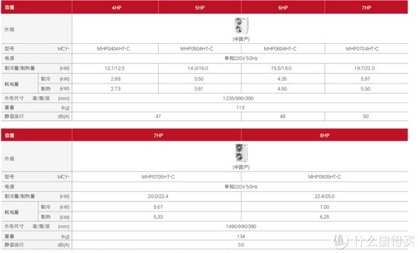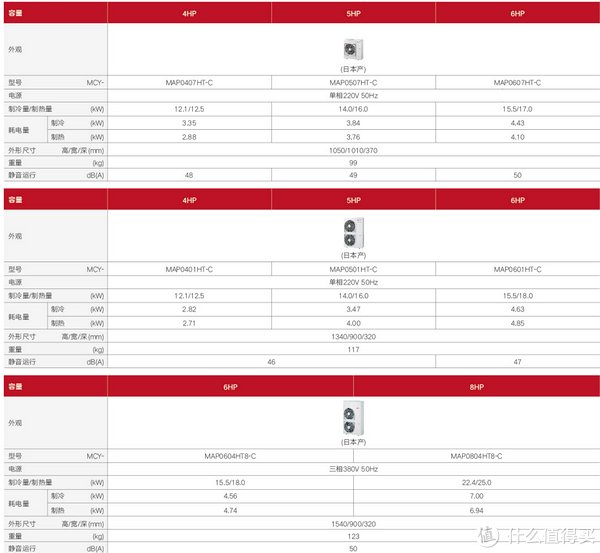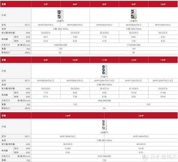 (1)220V外机从4p到8p,最大制冷量22.4kw。380v外机则从7p做到了10p,最大制冷量28kw。