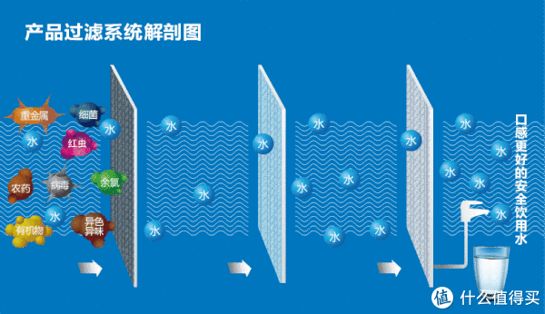 第一种,被动的过滤,原理很容易理解,就是我们的自来水中除了水分子,还有很多的其他物质,比如重金属,固体杂质,细菌,藻类,等等。。。