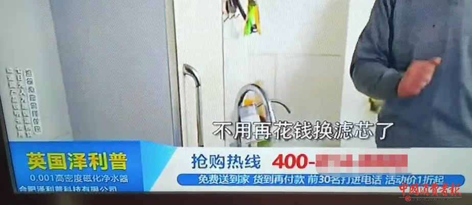8月9日晚上6点30分左右,记者打开电视,看到这则净水器广告在一档娱乐节目中循环插播。广告中介绍称: