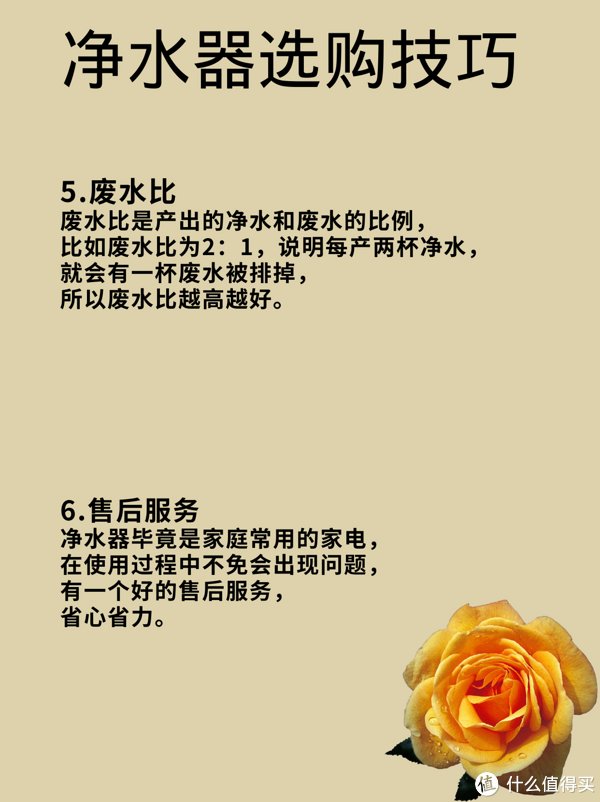 5、废水比,废水比是产出的净水和废水的比例,比如废水比为2:1,说明每产两杯净水,就会有一杯废水被排掉,所以废水比越高越好。