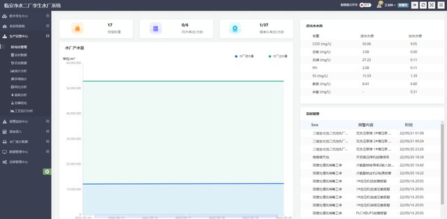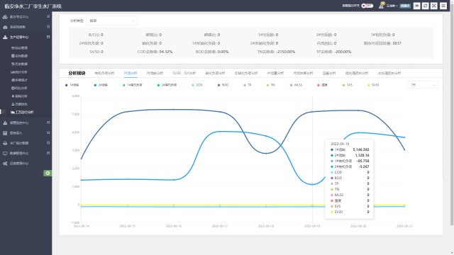 生产运营中心,可以实时查看净水厂运行数据,对净水厂数据进行智能化分析。